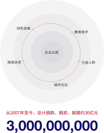 与此同时,我们在绿色金融、精准脱贫、引金入黔、城市文化、助学教育等社会发展领域中,同心同德,砥砺前进。从2007年至今,总计捐款、捐资、捐建约30亿元。